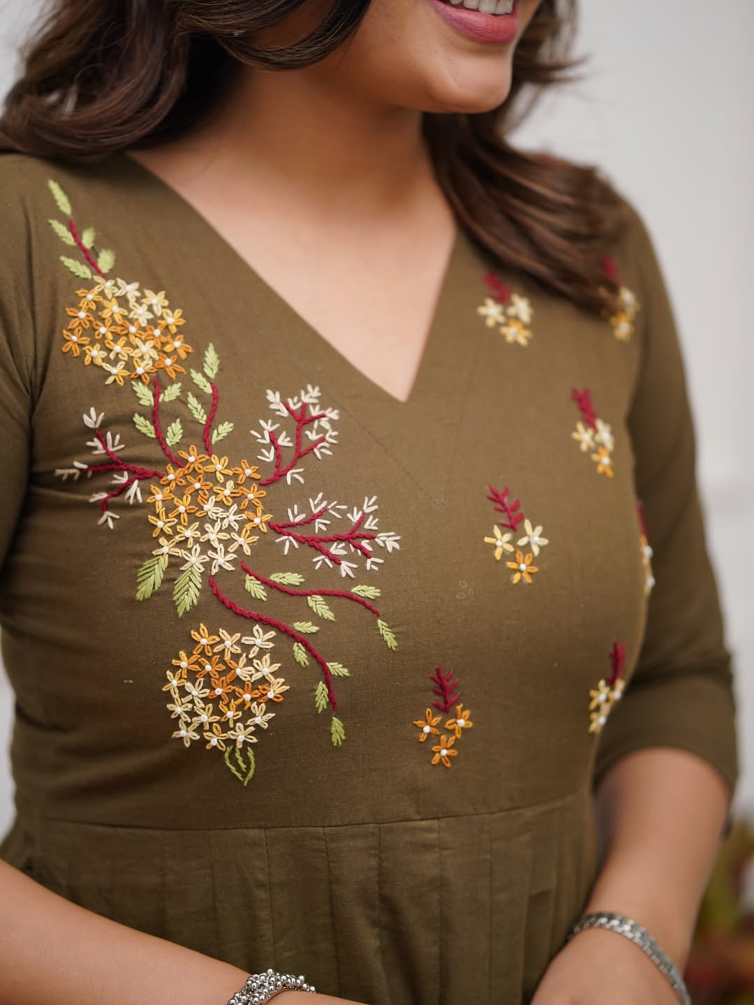Premium cotton fabric with hand work detailing