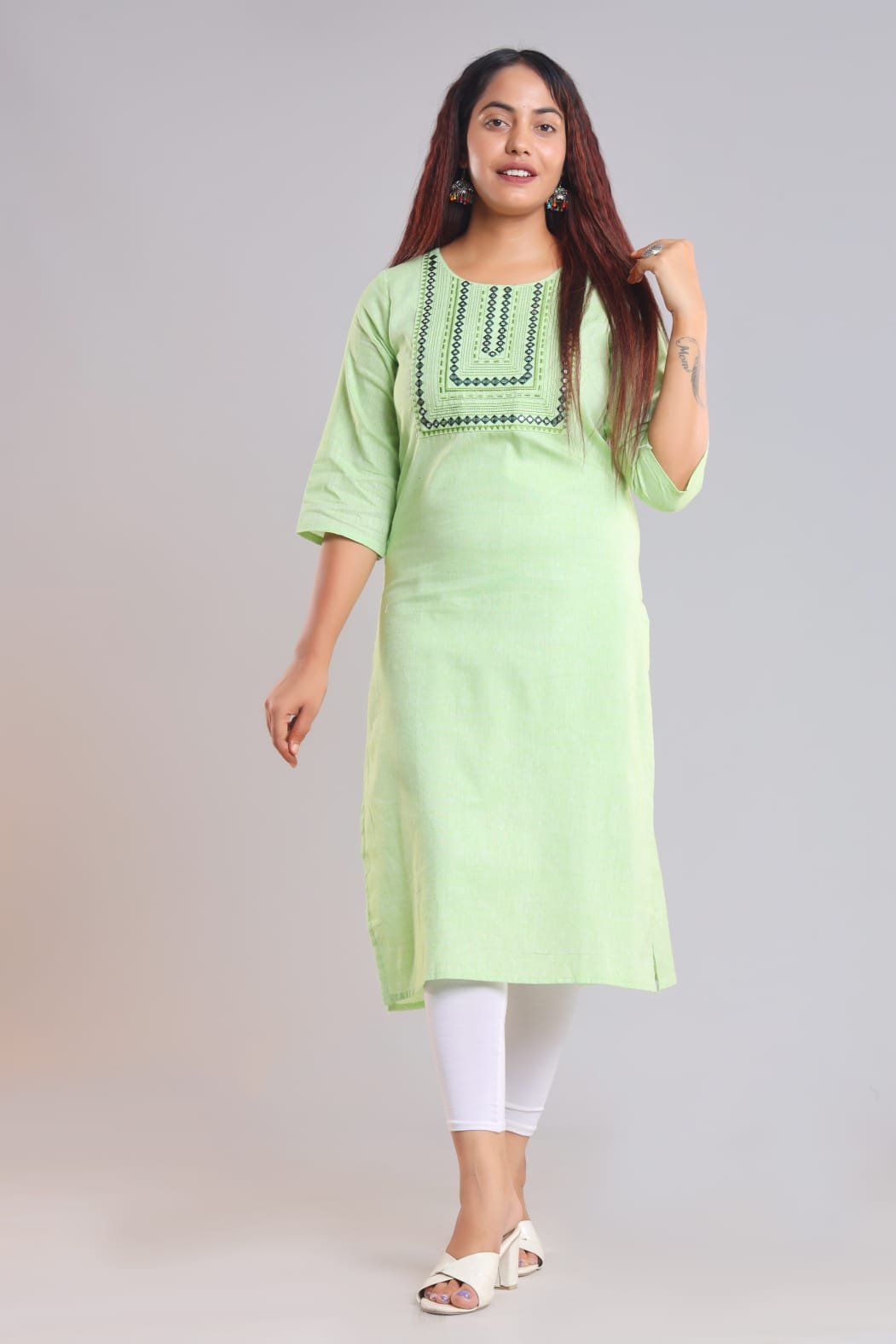 Made from soft and breathable fabric, the kurti is suitable for long hours of wear—whether you’re at work, running errands, attending small functions or enjoying casual outings. The refreshing green colour brings a fresh, graceful vibe that works well for all-day styling.
