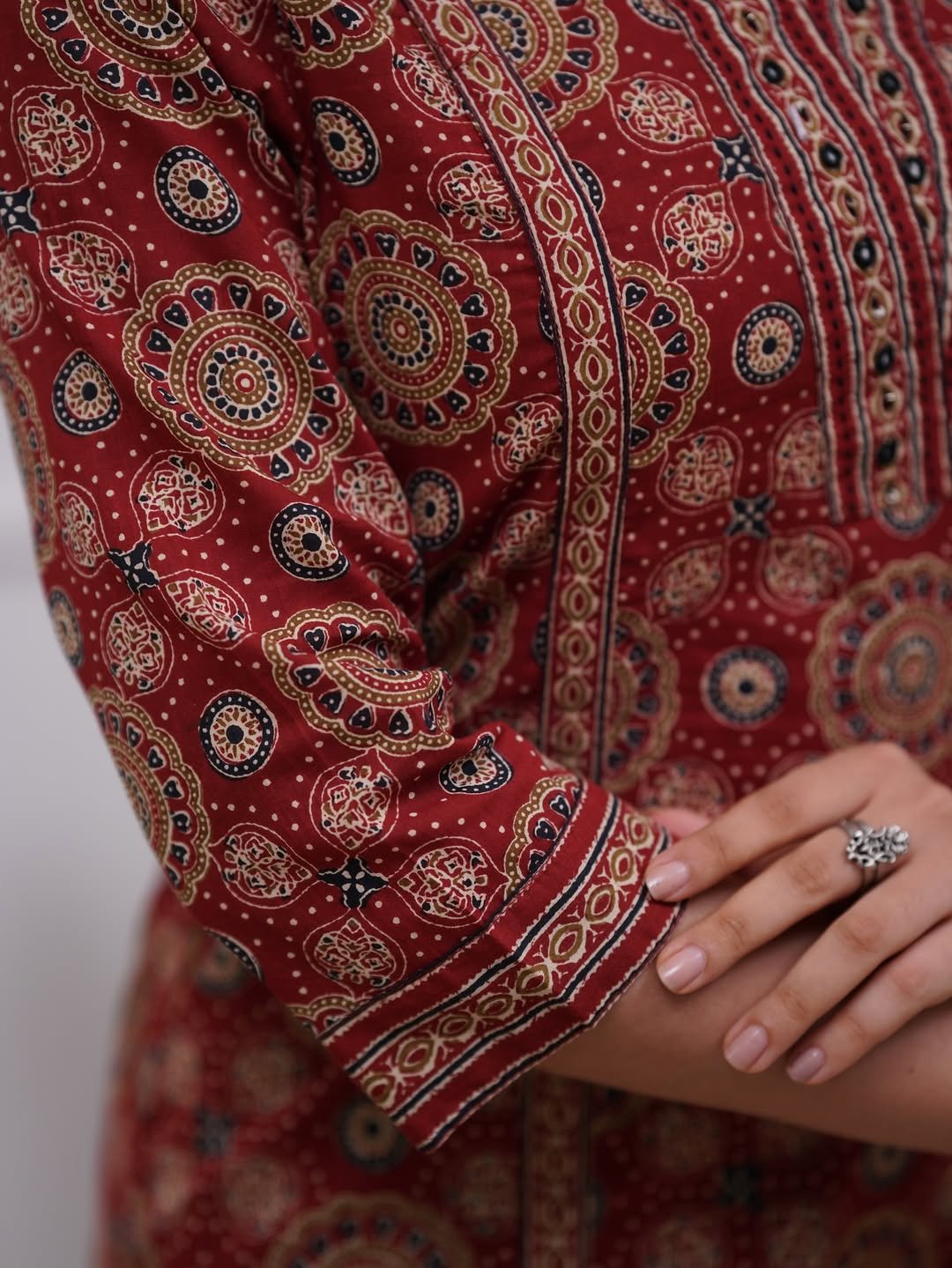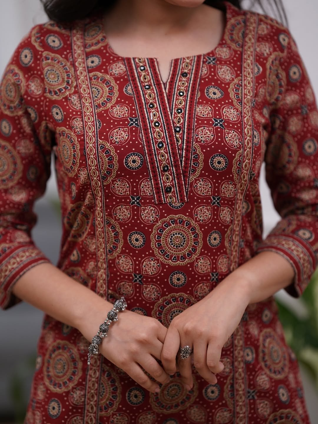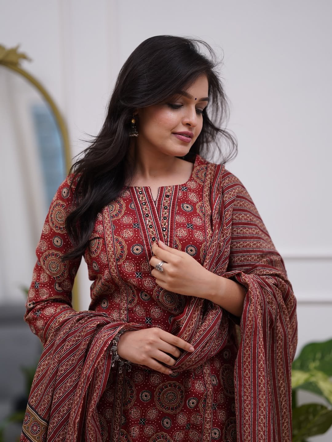 Where culture meets comfort, this Premium Maroon Ajrakh Cotton Suit Set with Dupatta is designed for women who love effortless ethnic elegance. Featuring traditional Ajrakh prints, this suit set reflects timeless craftsmanship combined with modern-day comfort.