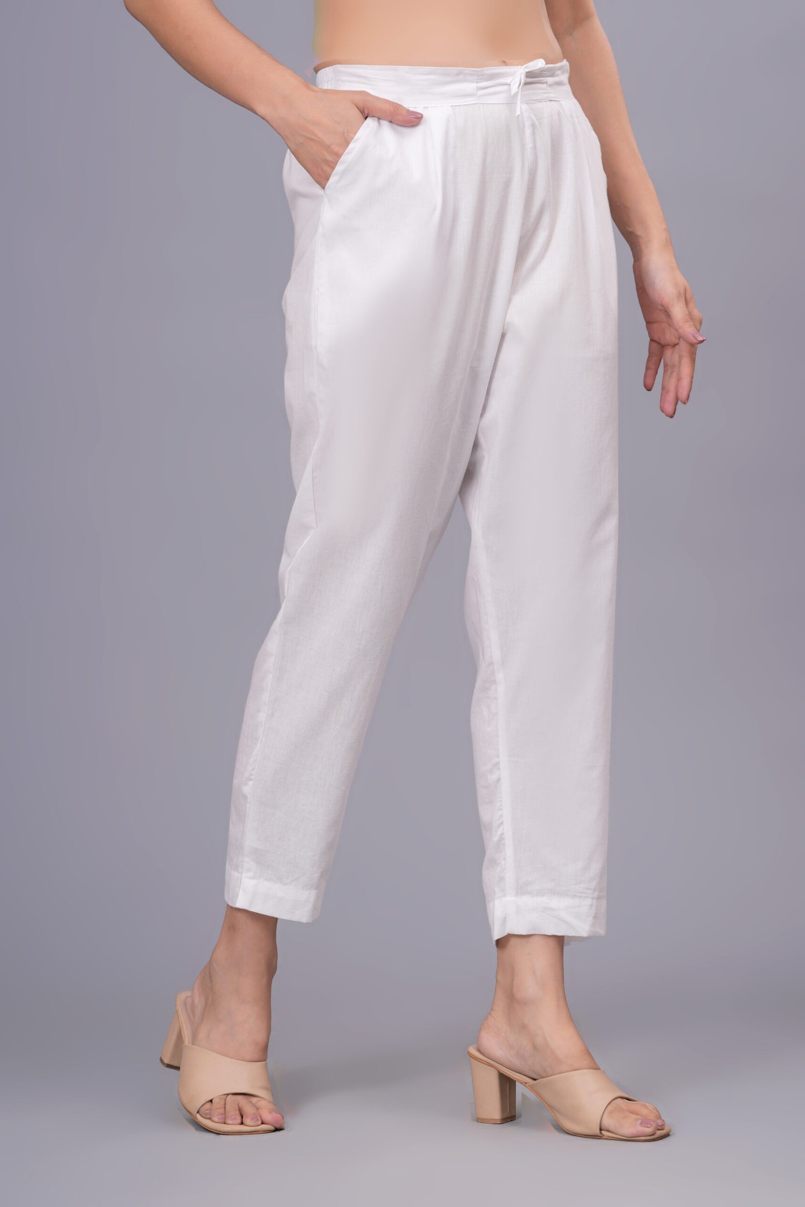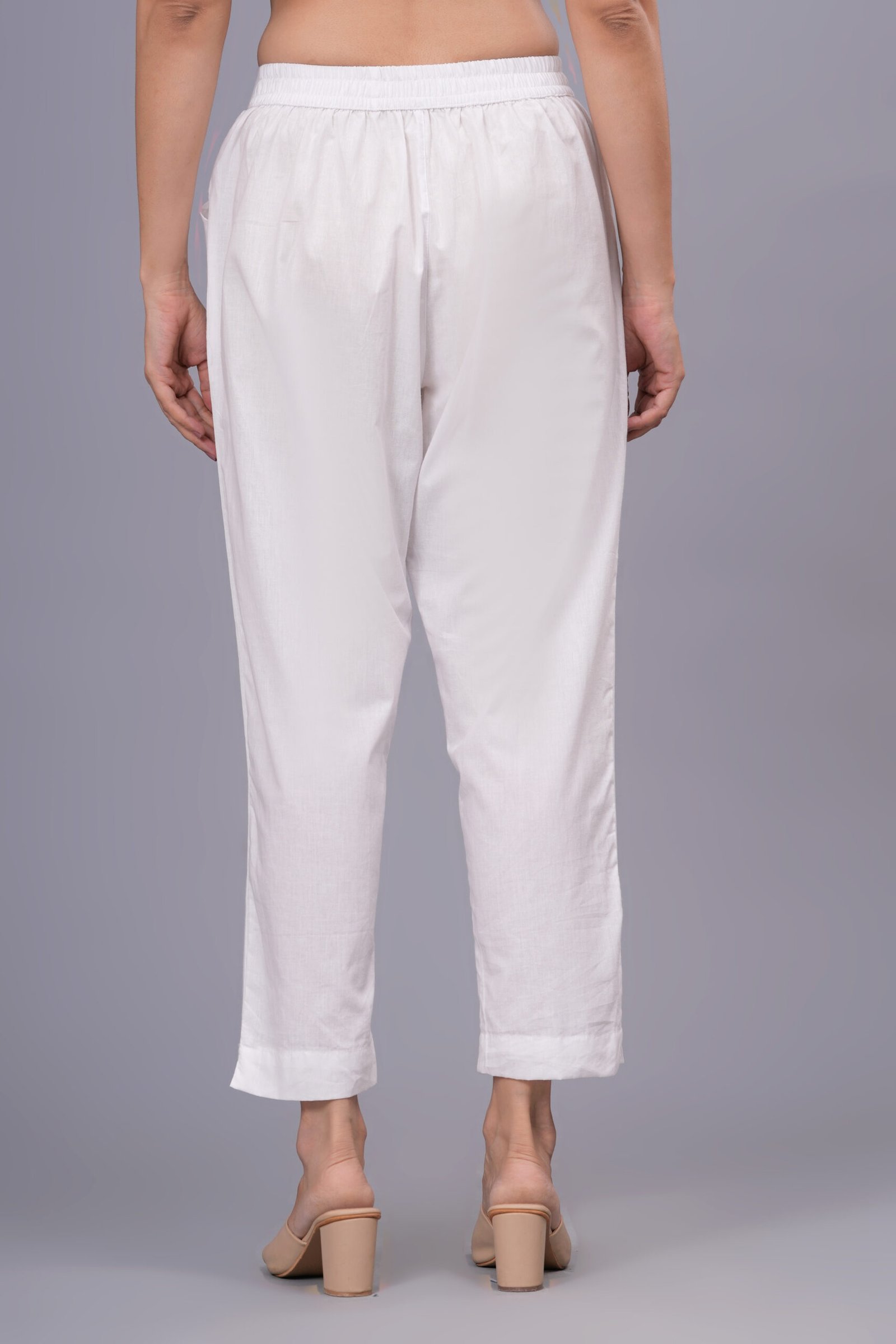 The subtle off-white shade gives a refined, classy touch that pairs effortlessly with printed or solid kurtis, designer tops, and Indo-western outfits. Whether you need something for office, daily use, or festive wear, this pant is the perfect versatile addition to your wardrobe.