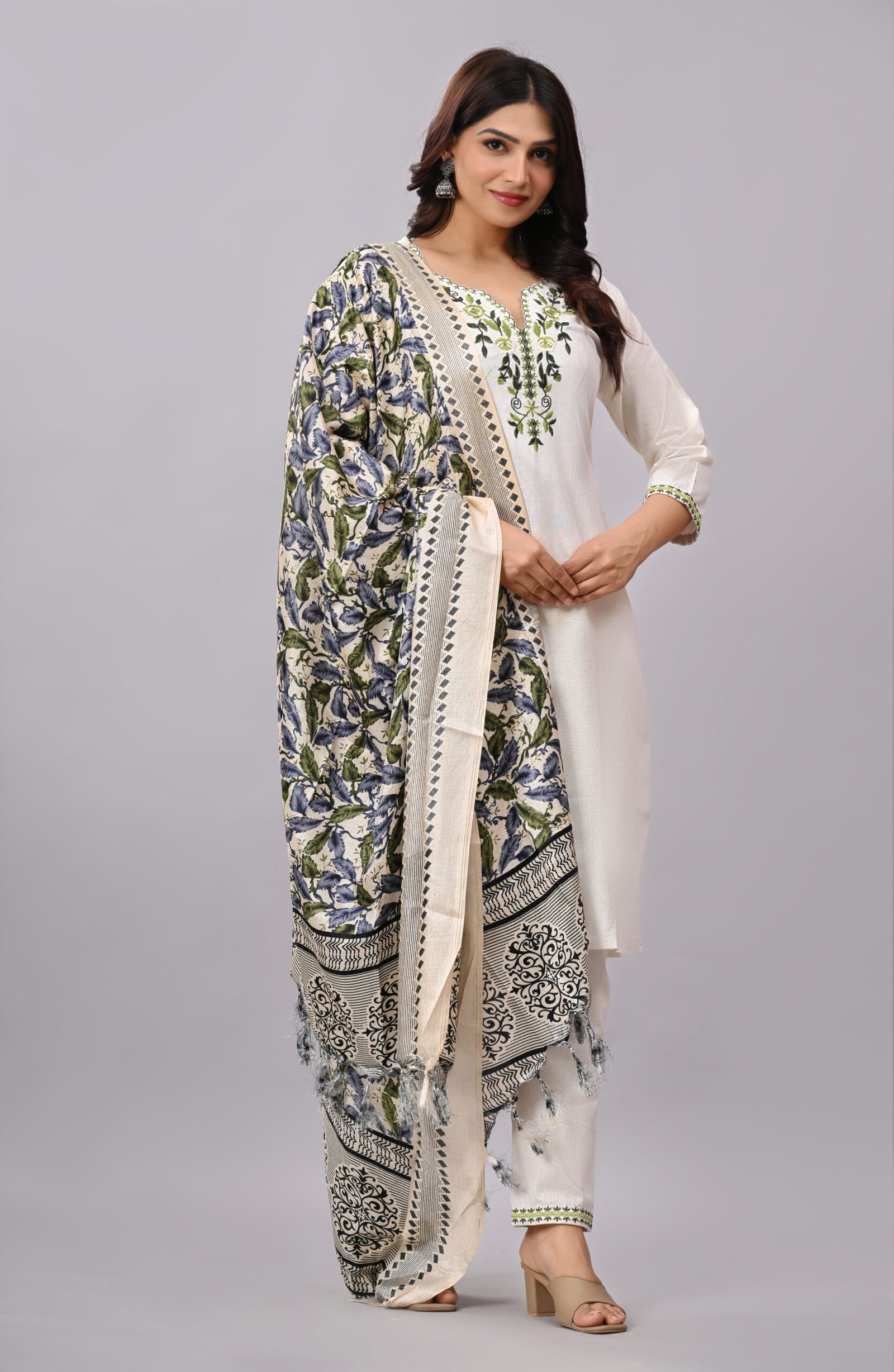 Absolutely loved this green embroidered kurta set! The cotton fabric feels premium and breathable, perfect for all-day wear. The silk dupatta adds a very elegant touch. Highly recommended for festive and casual occasions.