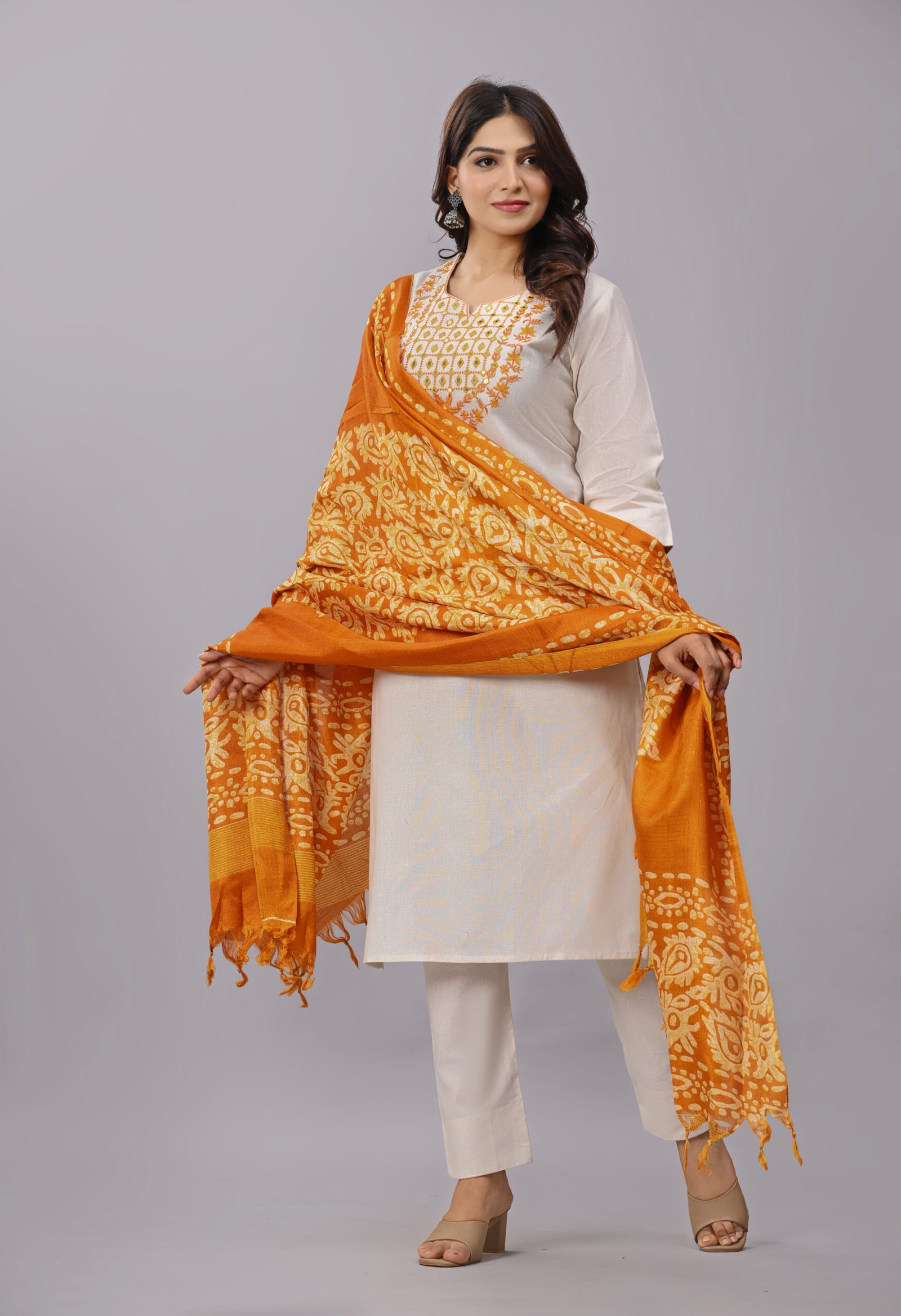 Brighten your ethnic collection with this Premium Orange Cotton Embroidered Suit Set, designed for a refreshing festive and casual look. The kurta showcases soft multicolor floral embroidery that enhances its elegance. Made with breathable cotton, it feels comfortable throughout the day.